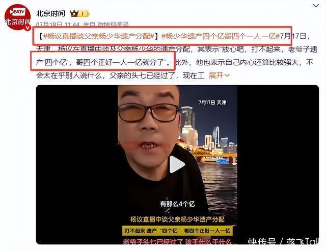 在阅读此文之前,辛苦您点击一下“关注”,既方便您进行讨论和分享,又能给您带来不样的参与感,感谢您的支持! 文丨 元宝 编辑丨 半截竹子 世上最痛心的事莫过于和亲人生离死别,而有些人的葬礼却成了“照妖镜”,炸出一堆“牛鬼蛇神”。 同样都是父亲去世,杨议的操作让人摸不着头脑,葬礼上各种作妖,葬礼过后拿“4个亿遗产”博眼球,